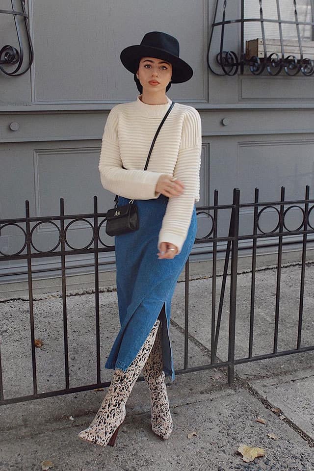 لتنسيق البوط الطويل مع البنطلون الجينز، أنت بجاجة إلى اختيار البنطلون الفضفاض الـ Culotte ويفضل أن يكون قصير، فلم يعد الجينز الضيق هو اختيار أغلب مدوني الموضة. إذا كان بنطلون طويل فعليك وضعه داخل البوط.