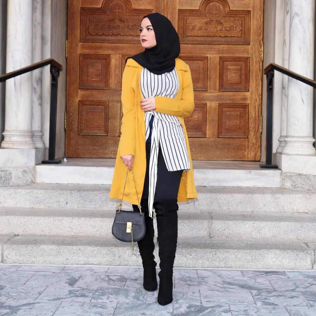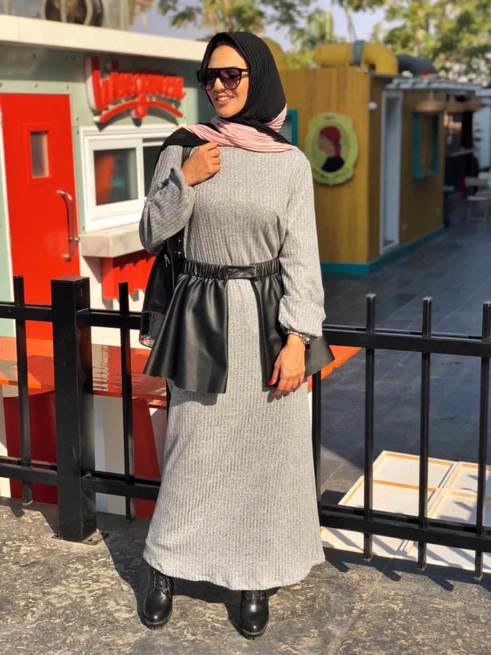 إطلالة مميزة تناسب فصل الشتاء وتوفر لك الدفء، لن تحتاجي للكثير مع فستان الصوف إذا كنت سيدتي من المحجبات، عليك فقط اختيار لون حجاب مناسب للفستان مع وضع حزام خصر إذا كنت ترغبين في زيادة أناقتك مع ارتداء بوت أو حذاء رياضي باللون الأبيض وستكونين جاهزة بدون عناء!