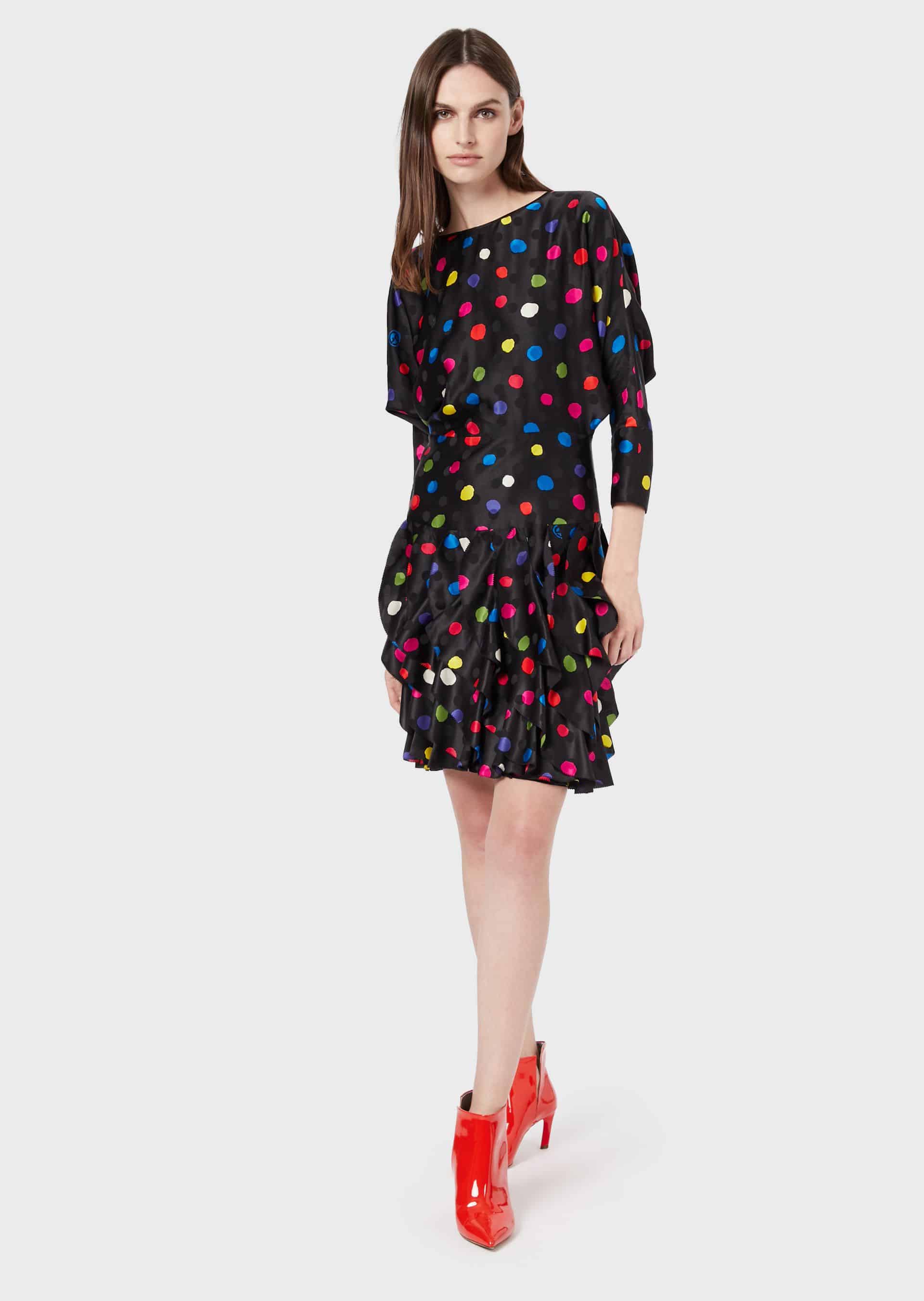 فستان جورجيو أرماني بولكا من كريب الساتان مع تنورة منتفخة