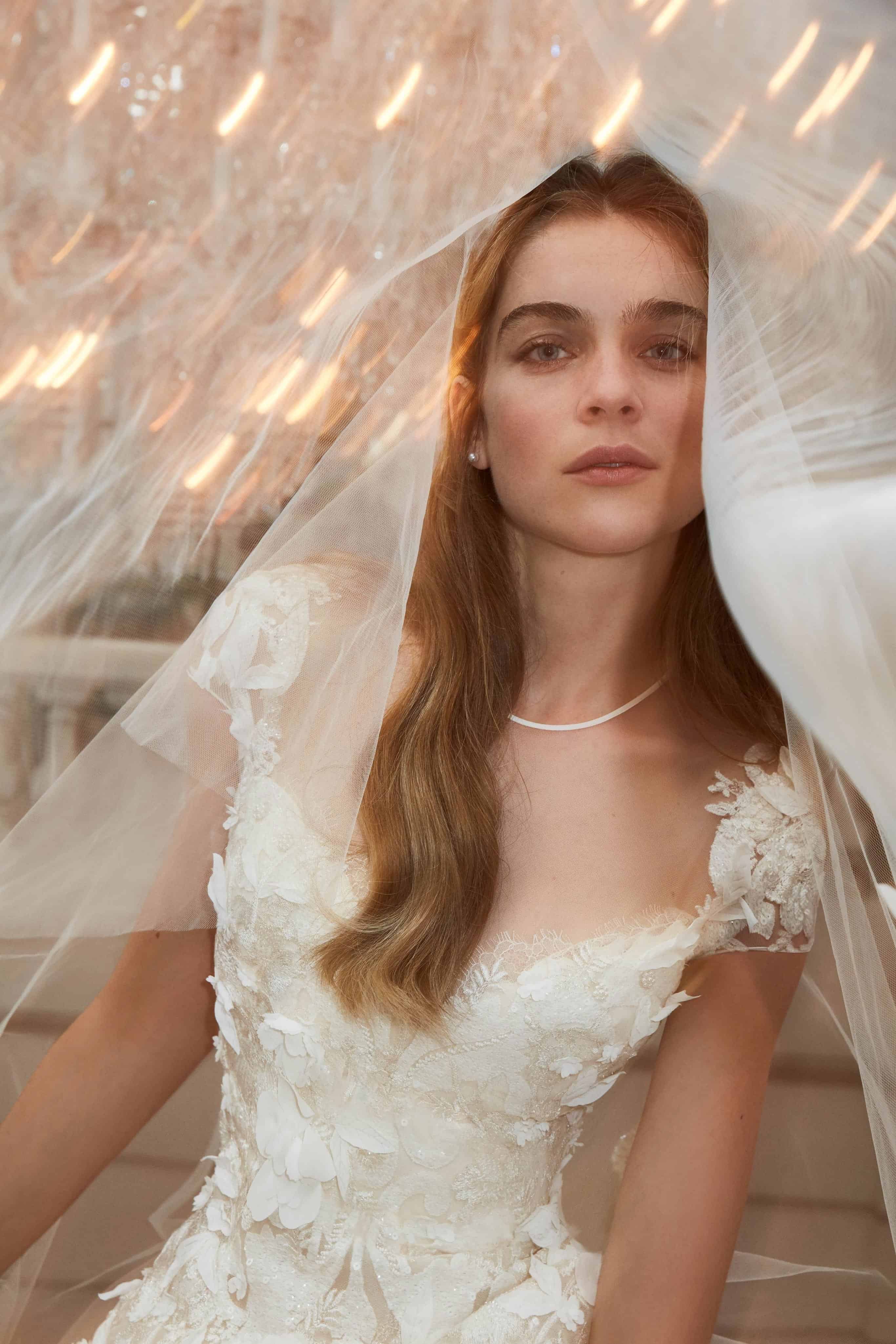 ما يميز هذه التشكيلة هو أنها تفكرنا بأثواب زفاف غريس كيلي وكيت ميدلتون المزودة بتنانير ضخمة وأكمام من الدانتيل.