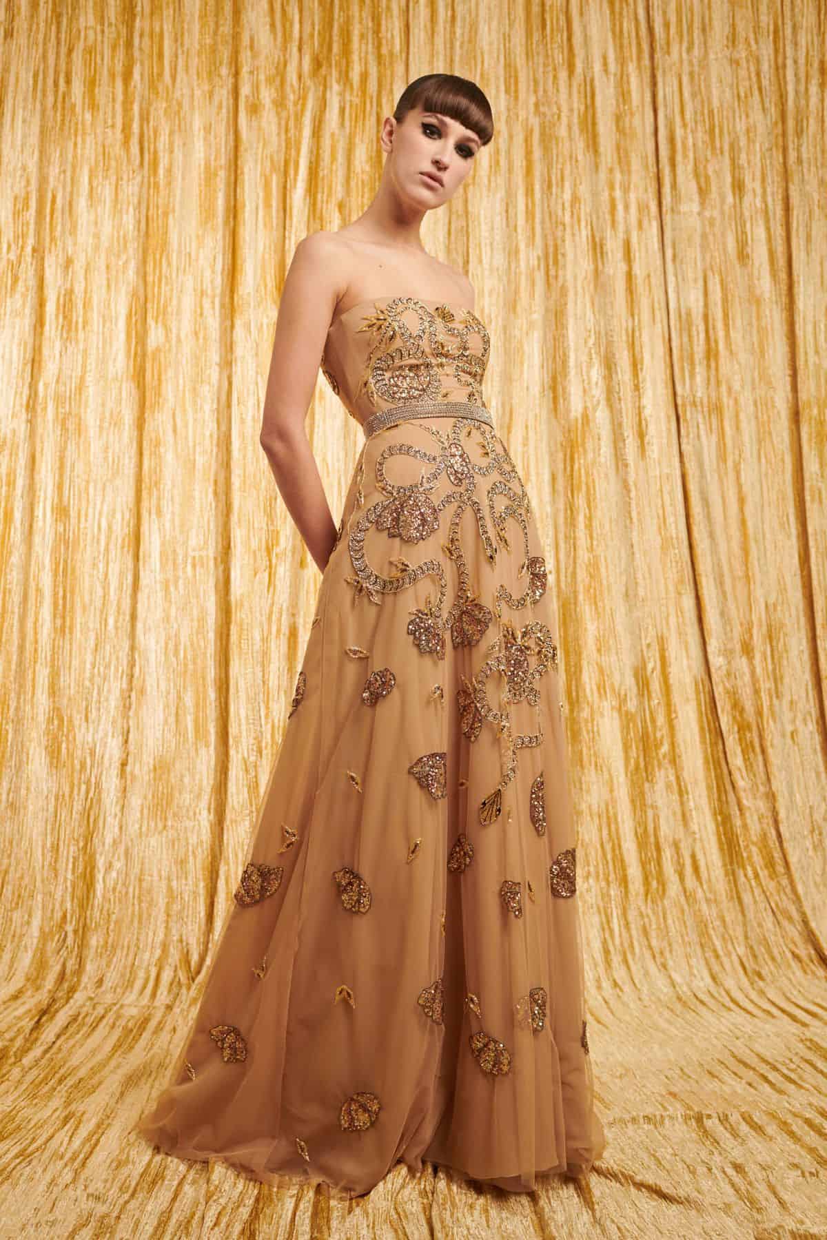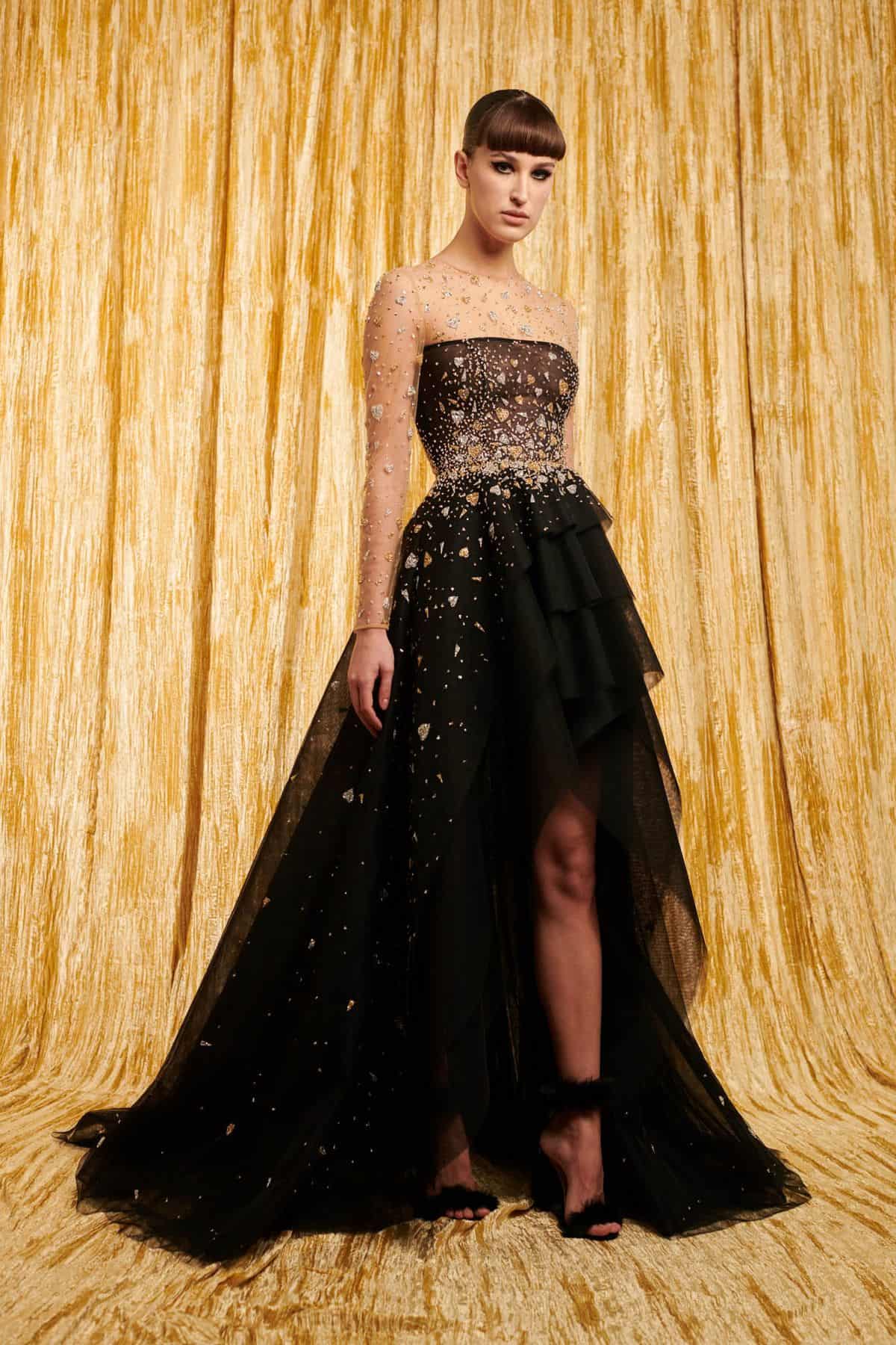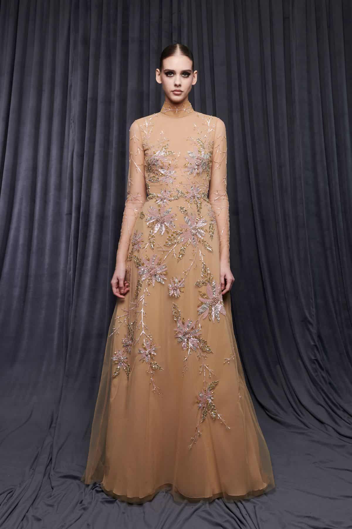 قدم جورج حبيقة مجموعة من فساتين سهرة تجسد جمال الأنوثة الحالمة، بموديلات غاية في التميز وبتدرجات ألوان الوردي والنيود لإطلالة فاخرة. كما ستجدين التول الأسود في تصميم التنانير وزود بعض الفساتين بسترات قصيرة مطرزة.