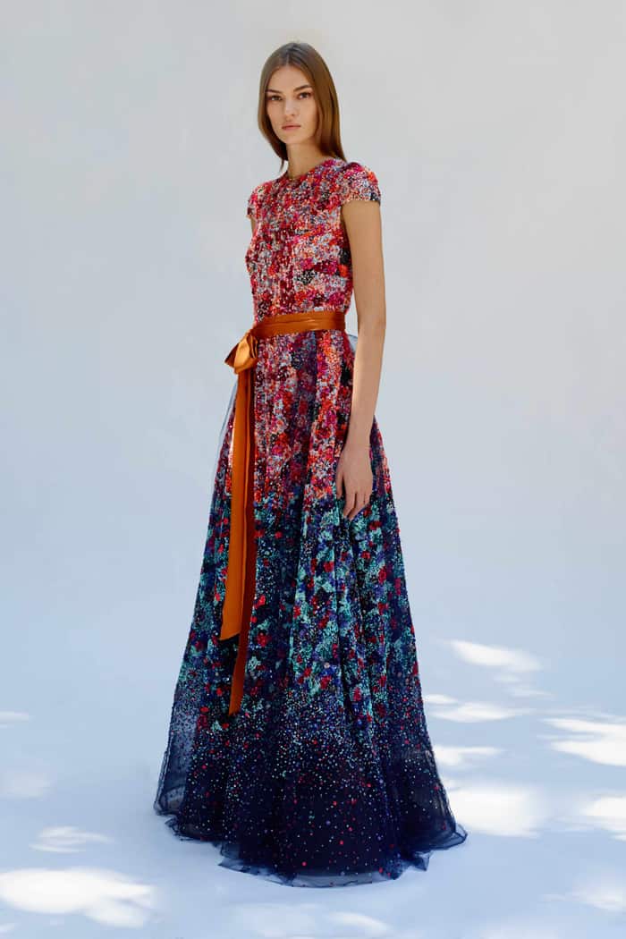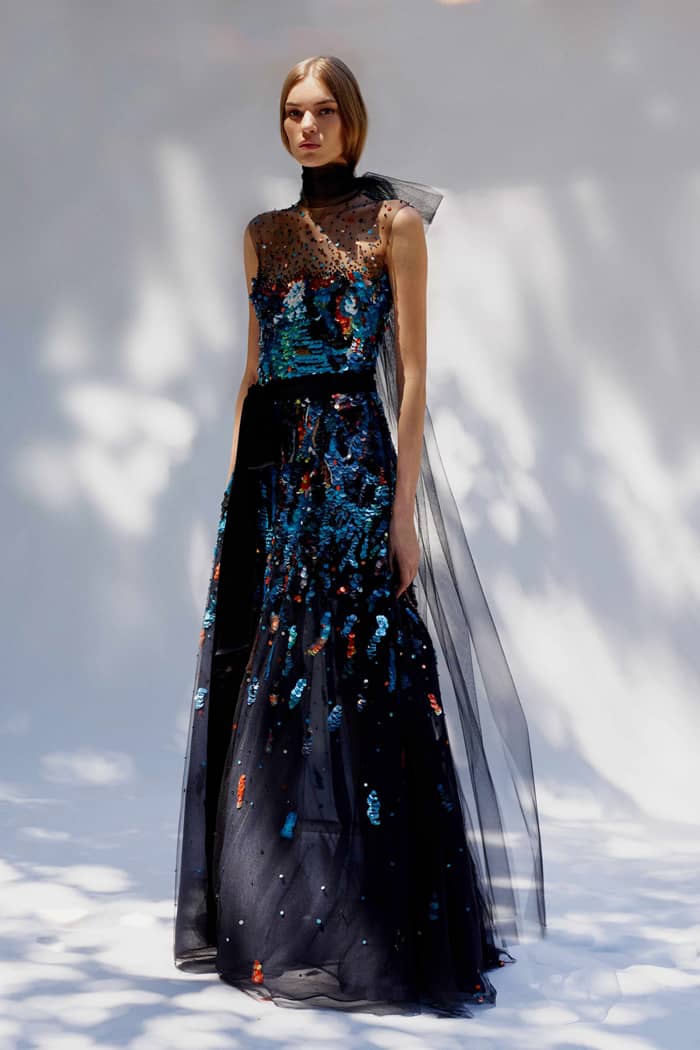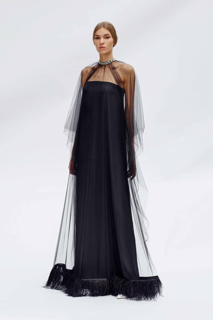 كما ستجدين سيدتي الفساتين والقفاطين المونوكروم التي يمكنك تنسيقها مع سكارف أو بروش حسب اختيارك حتى تتمتعي بإطلالة رائعة ومختلفة. وقامت المصممة ريم عكرا بتطريز بعض الموديلات حول الياقة أو إضافة الريش النافر حول الحواف لتكون مناسبة للسهرات والحفلات. (vistex.com)
