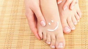 4- بعد الانتهاء من التقشير، قومي بشطف قدميك بالماء الفاتر، ثم جففيهما جيدا وطبقي عليهما الكريم المرطب.