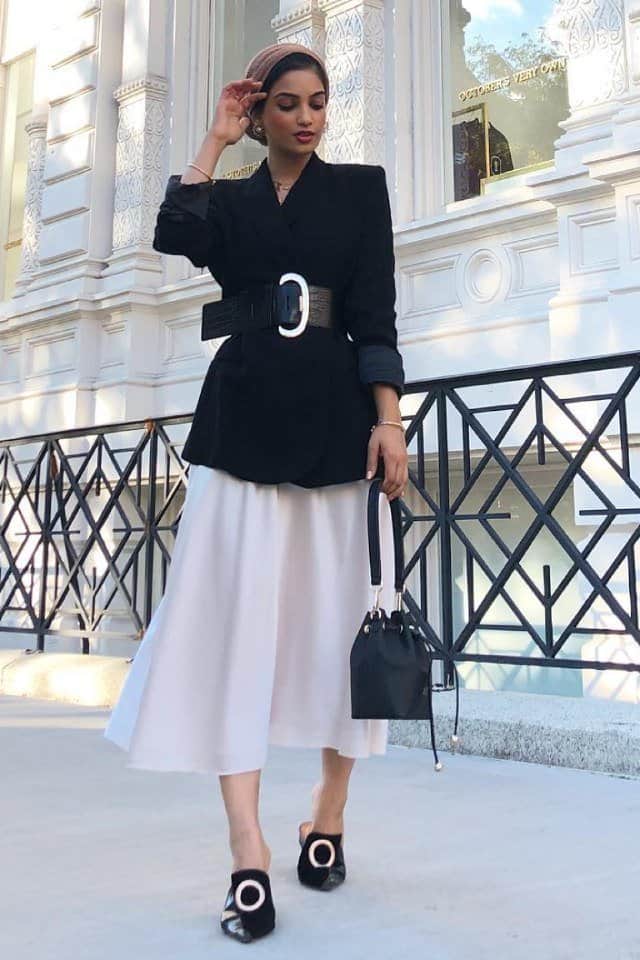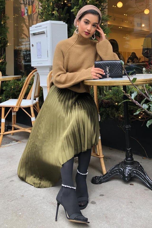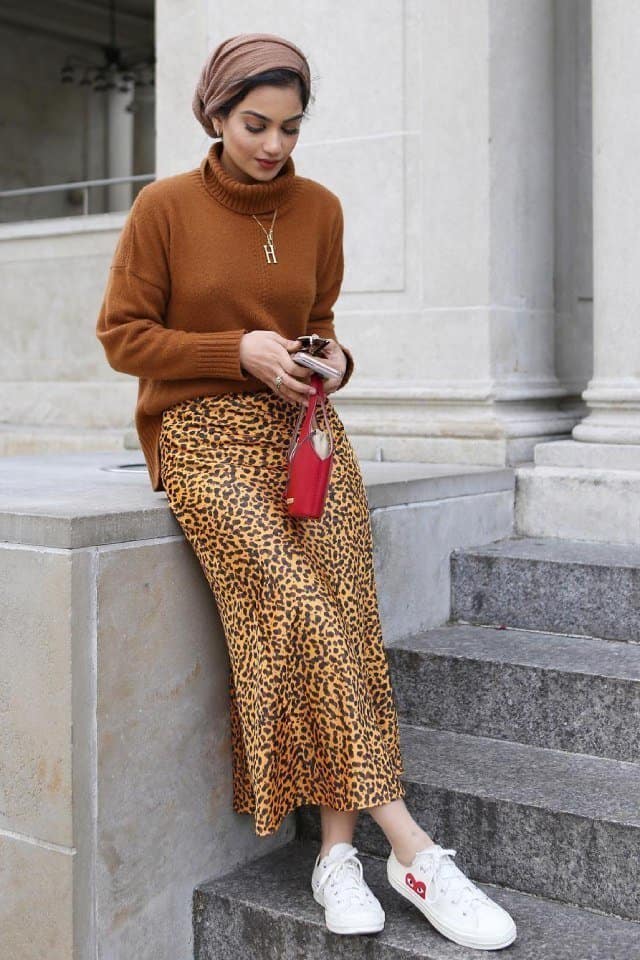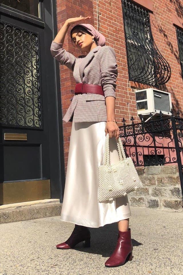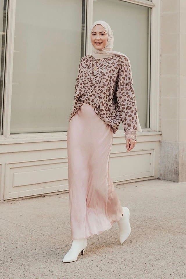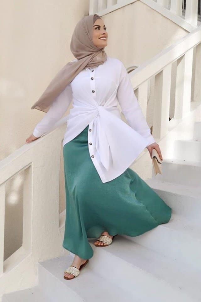 كيف تنسقين التنورة الستان مع الحجاب؟
