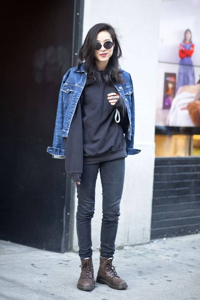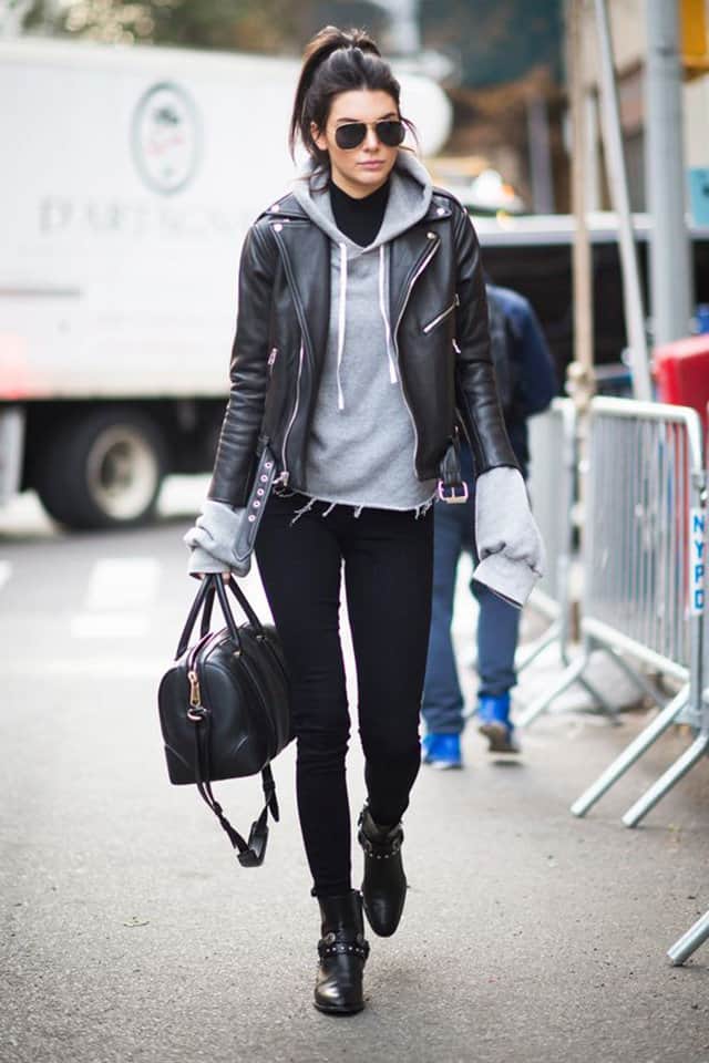 للشعور بالدفئ وللتمتع بإطلالة شبابية أنيقة يمكنك سيدتي تنسيق السويت شيرت مع الجاكيت الجلد.
