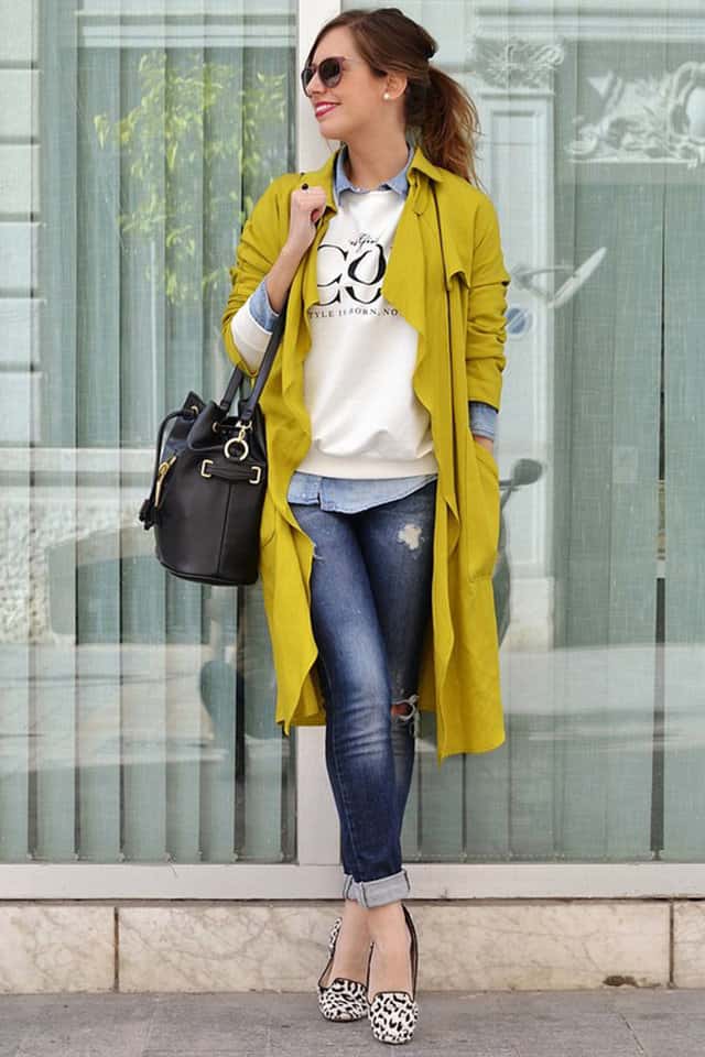 للتمتع بمظهر عملي وأنيق، يمكنك سيدتي ارتداء قميص بلون محايد ويتناسب مع لون السويت شيرت، ويمكنك اضهاره أسفله.