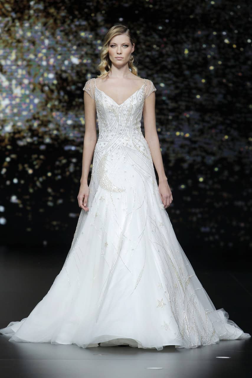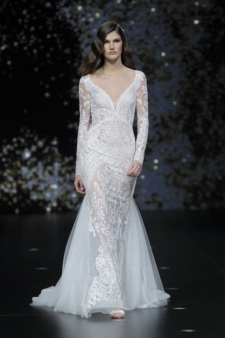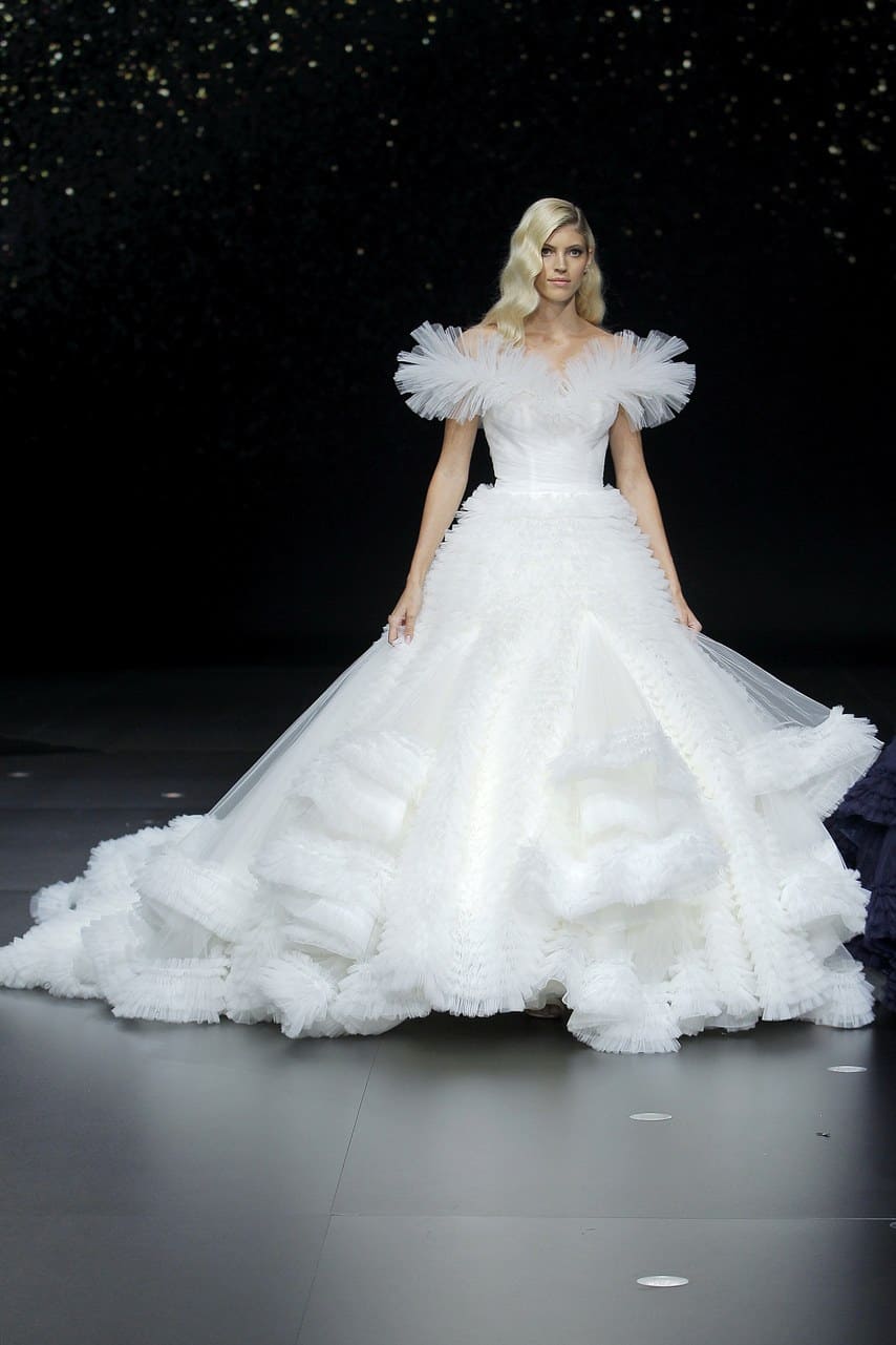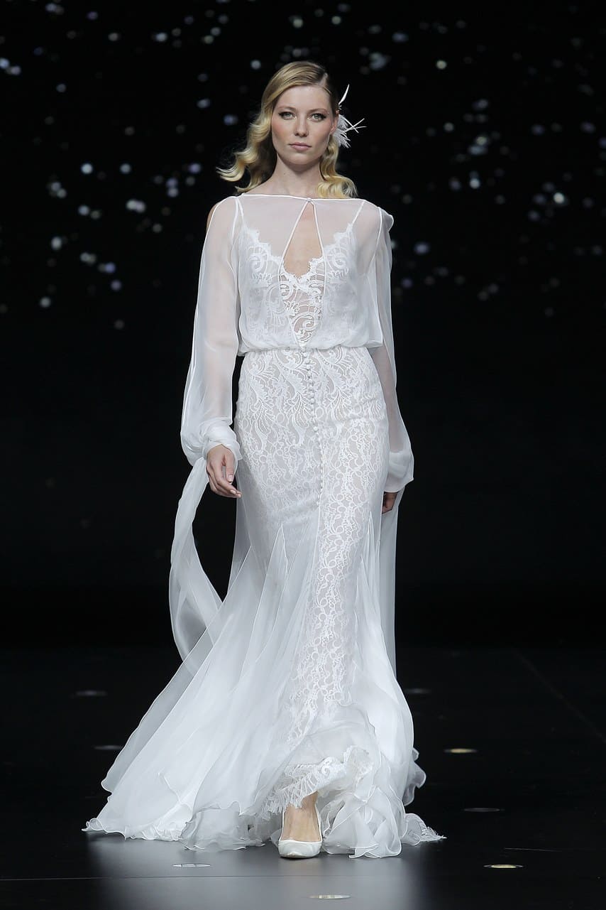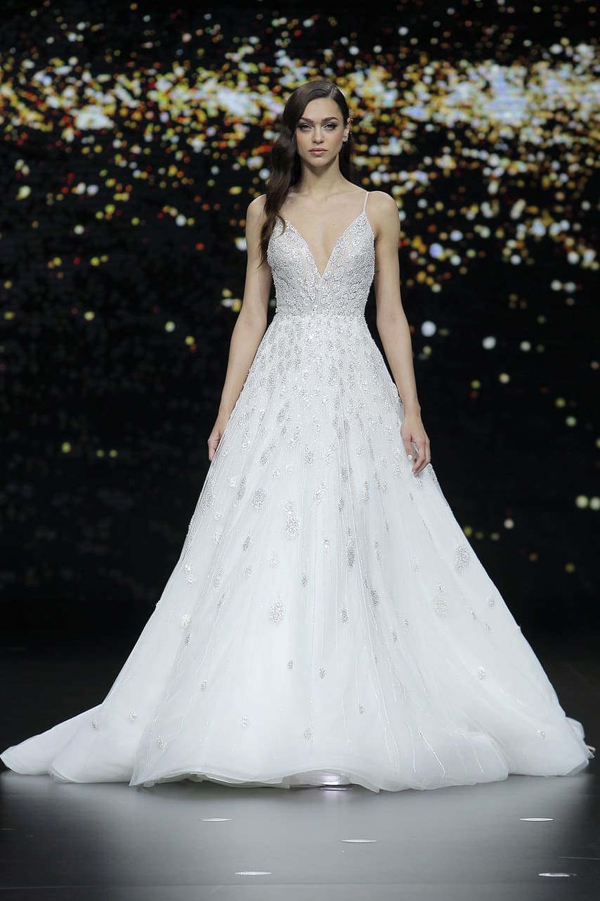 لاقت فساتين الزفاف المصممة بكتف واحد والمستوحاة من الستايل الإغريقي إعجاب الكثير من المدعوين خلال العرض، وقد هيمنت فساتين حورية البحر على مجموعة برونوفياس Pronovias ، بالإضافة إلى فساتين الزفاف المنفوشة مع خصر عالي وينصح بها للقصيرات أو لإخفاء البطن.