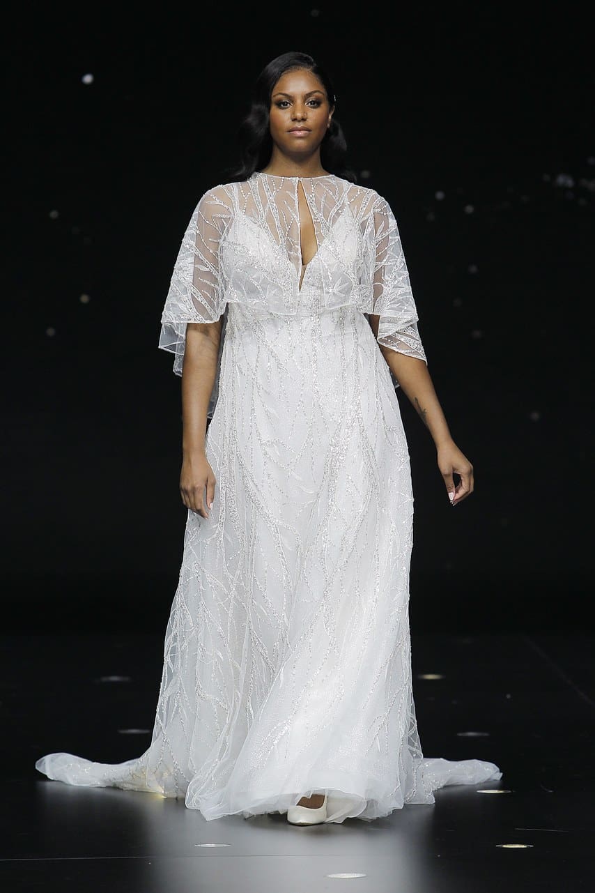 ضمت هذه المجموعة الجديدة بدلات فخمة لتسهل عليها الحركة بين المدعوين، كما أنها غنية بتطريزات ناعمة على الأكتاف، ومزودة بأكمام طويلة تصل إلى الأرض لتمنحها إطلالة ملائكية. وستجدين سيدتي فساتين مصممة للعروس الممتلئة مع قصة غير محددة للقوام.