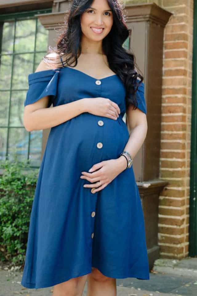 للحوامل: اختاري فساتين بالأزرار لإطلالة العيد