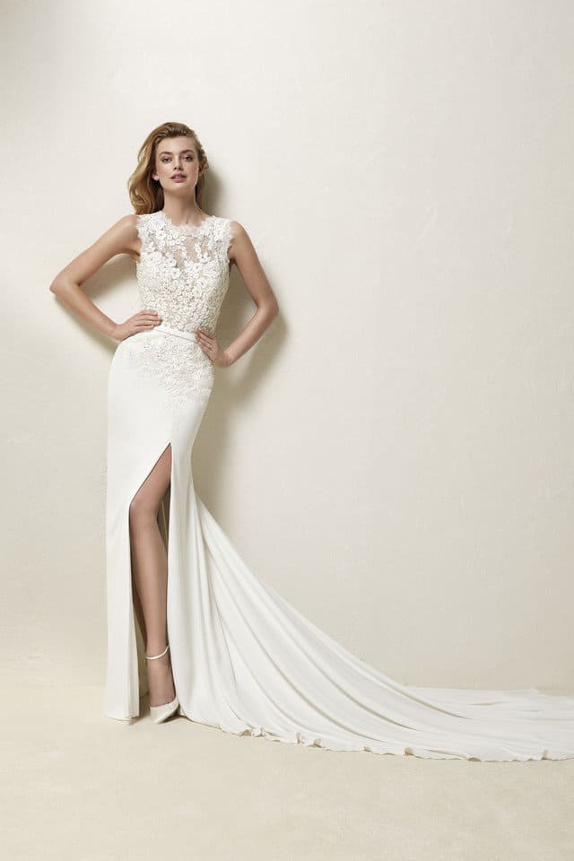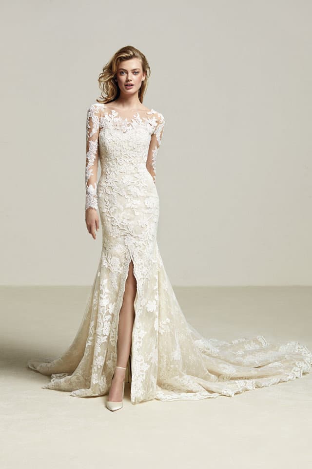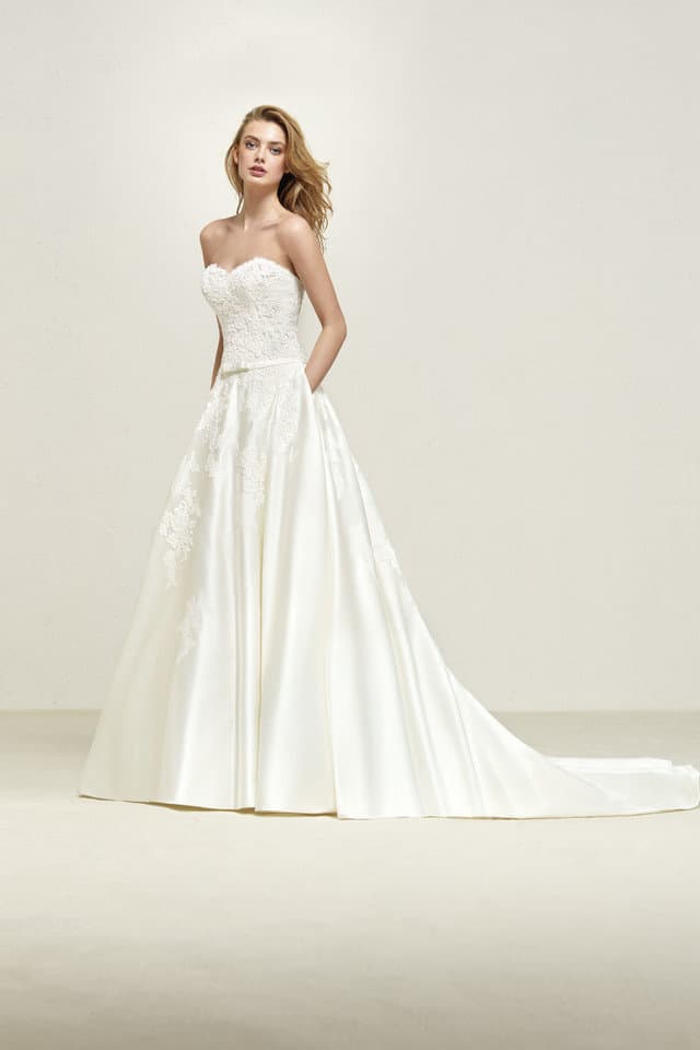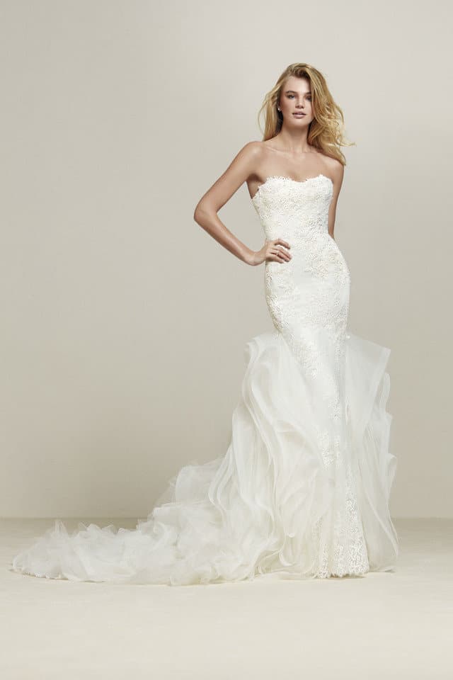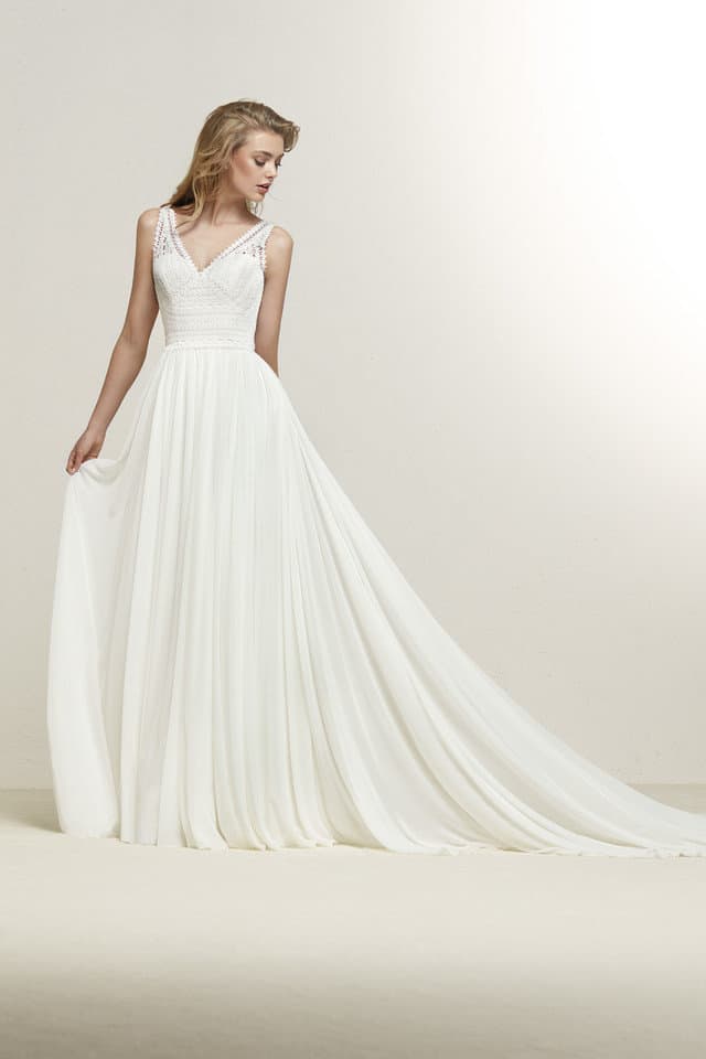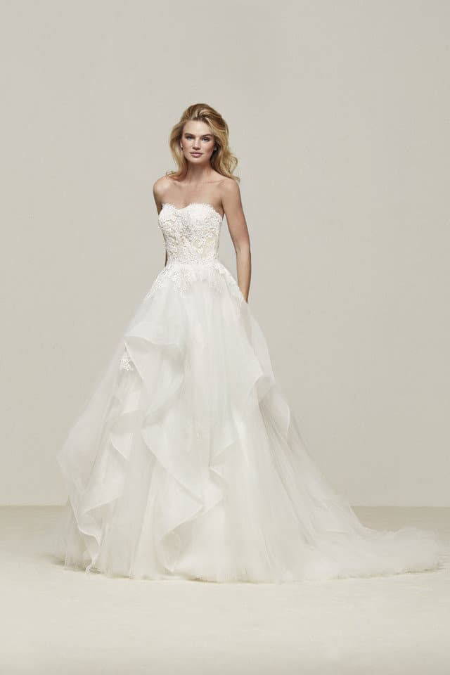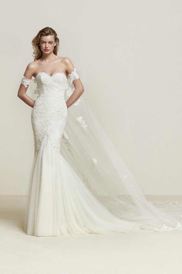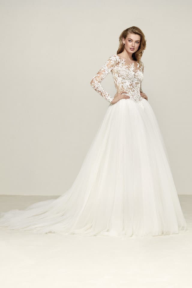تحلم كل فتاة بأن تختار التصميم الذي يعبر عن شخصيتها والموديل الذي يتناسب مع شكل جسمها. ضمت مجموعة برونوفياس فساتين زفاف ناعمة وخلابة. (Ambien)