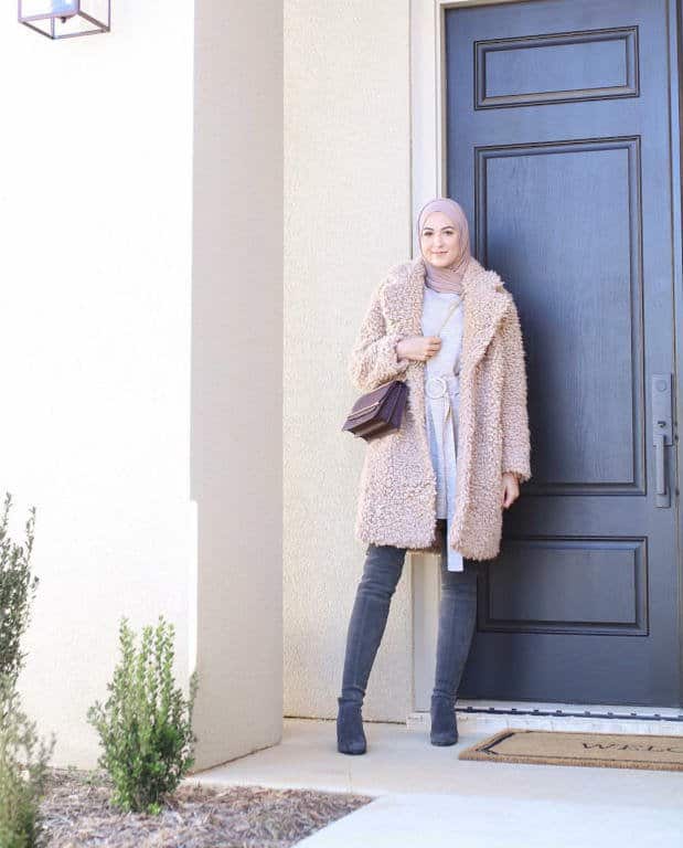 - إن كنت من محبات المعطف الماكسي الذي يجذب الأنظار بطوله المميز ويزيد المحجبات أناقة واحتشام، ننصحك بتنسيقه مع بوت طويل وإضافة حزام مميز وبسيط للمسة عصرية.
