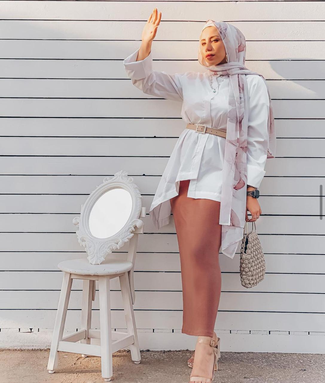 تنورة بلون نيود: تعتبر الألوان النيود من أجمل الألوان التي تضفي الهدوء والنعومة على إطلالة حواء، لذلك جربي ارتداء تنورة بلون نيود مع قميص واسع باللون الأبيض واعتمدي حزام عند الخصر.