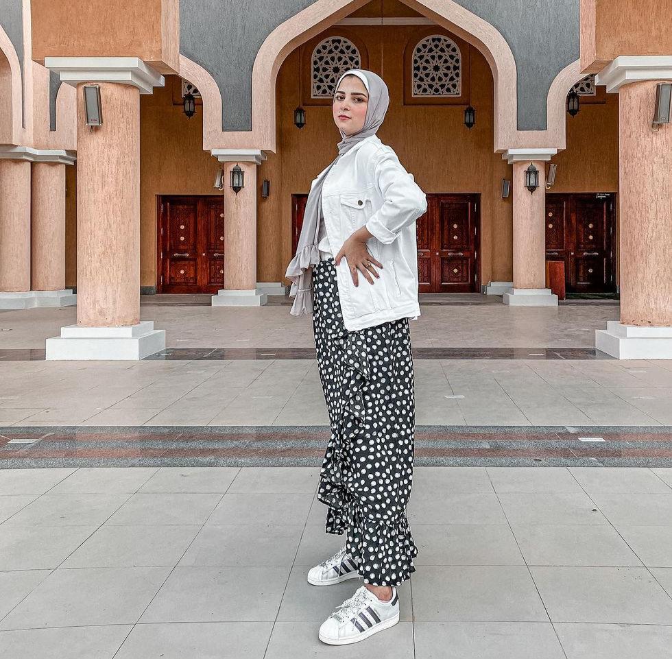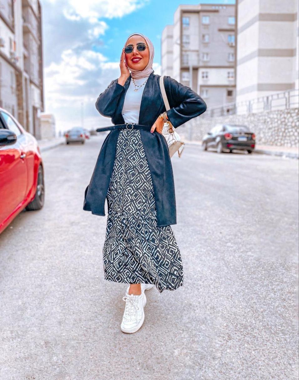 لذلك لا تترددي في تنسيقها مع توب وبلايزر باللون الأبيض مع حجاب محايد وحذاء خفيف.