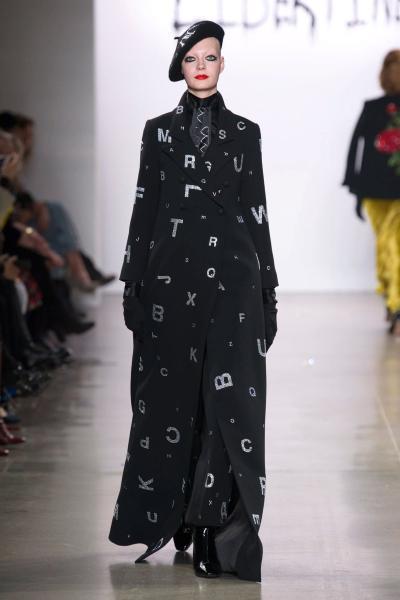 معطف طويل باللون الأسود بطبعة الحروف وقصة انسيابية.