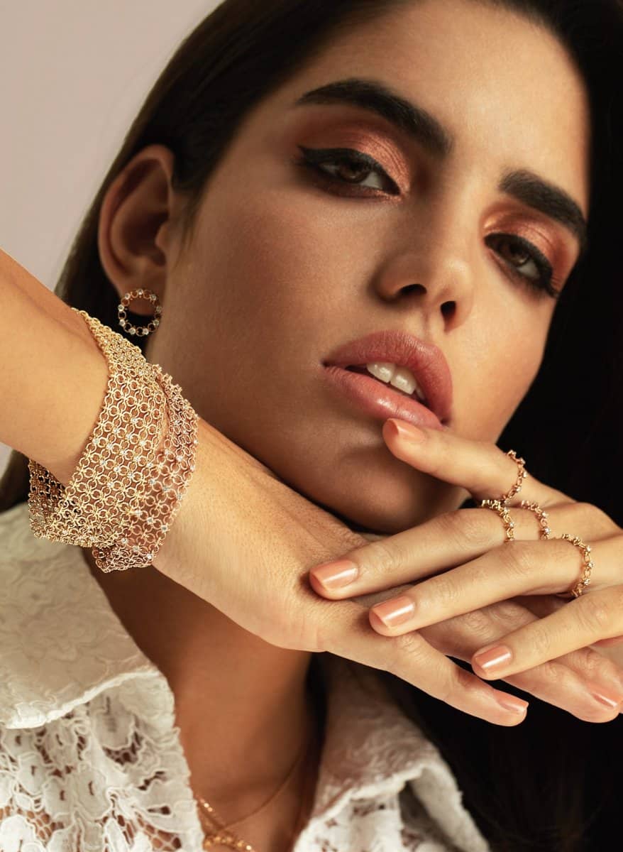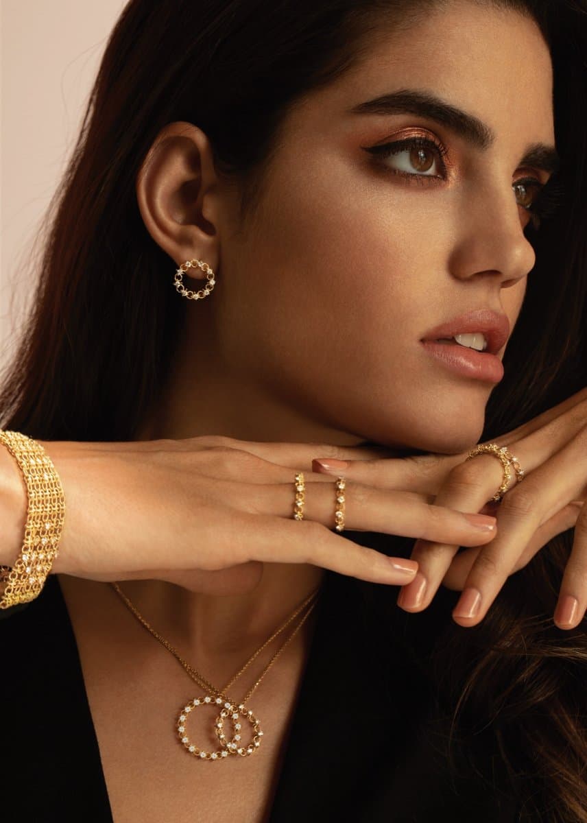 أقراط وعقد وخاتم وسوار من Petally d’or وسوار من SETA من مجموعة فرفشة Farfasha .