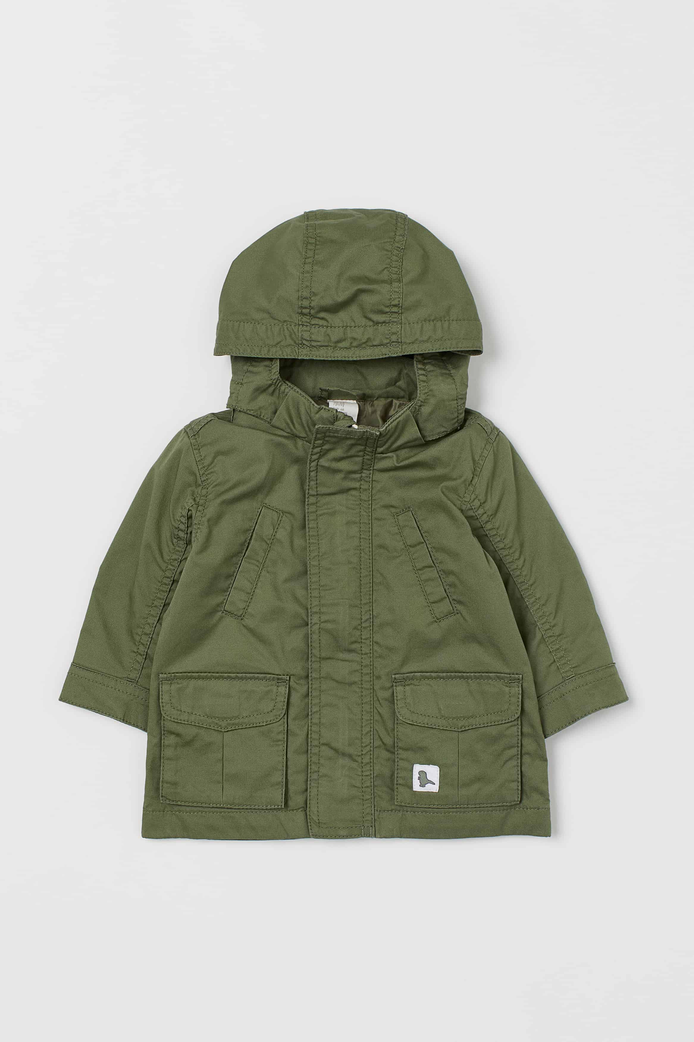 جاكيت مبطن ومنسوج من النايلون يأتي مع قبعة قابلة للفصل.
