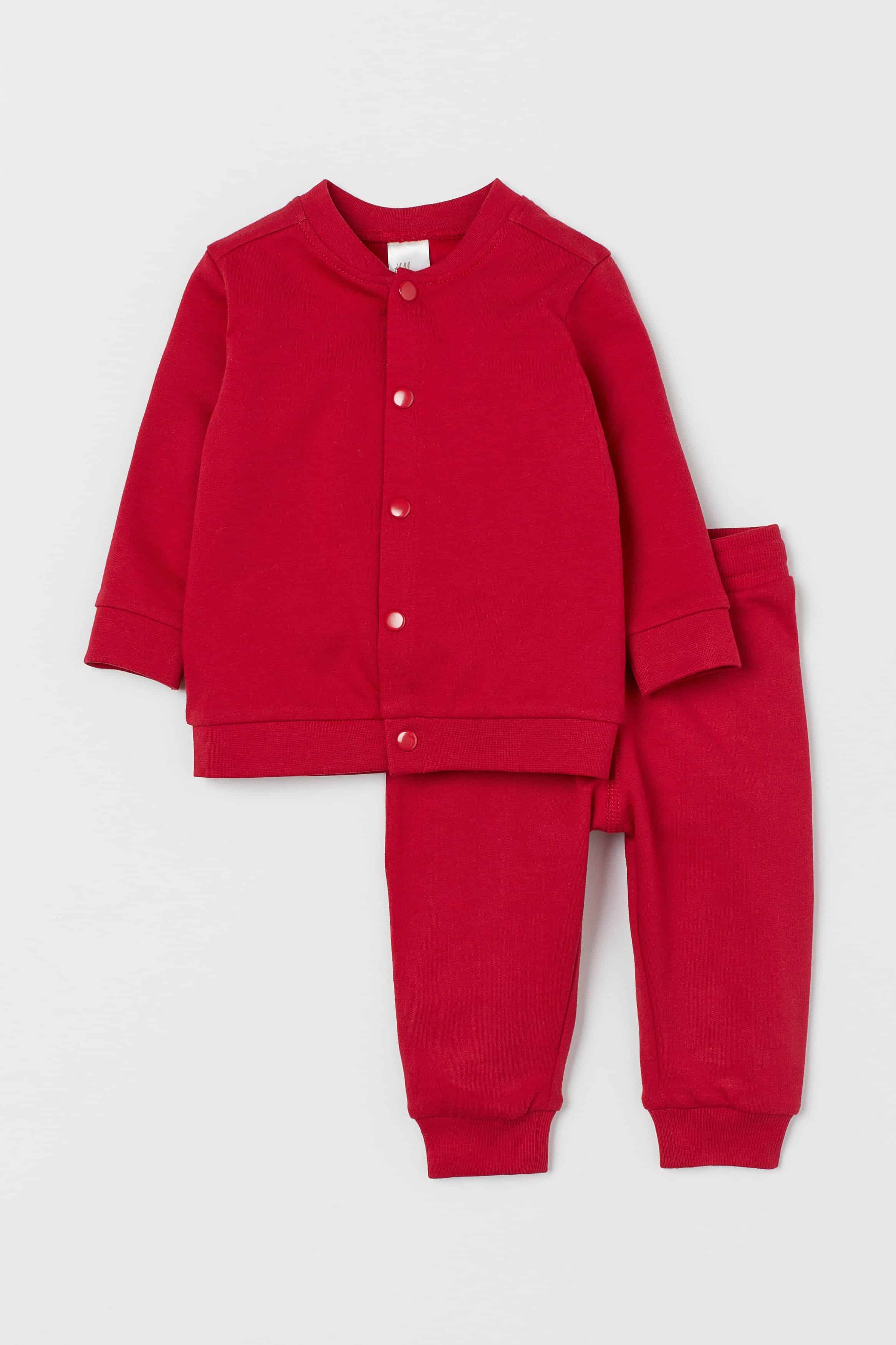 طقم مكون كارديغان وبنطلون من القطن العضوي السميك والناعم.