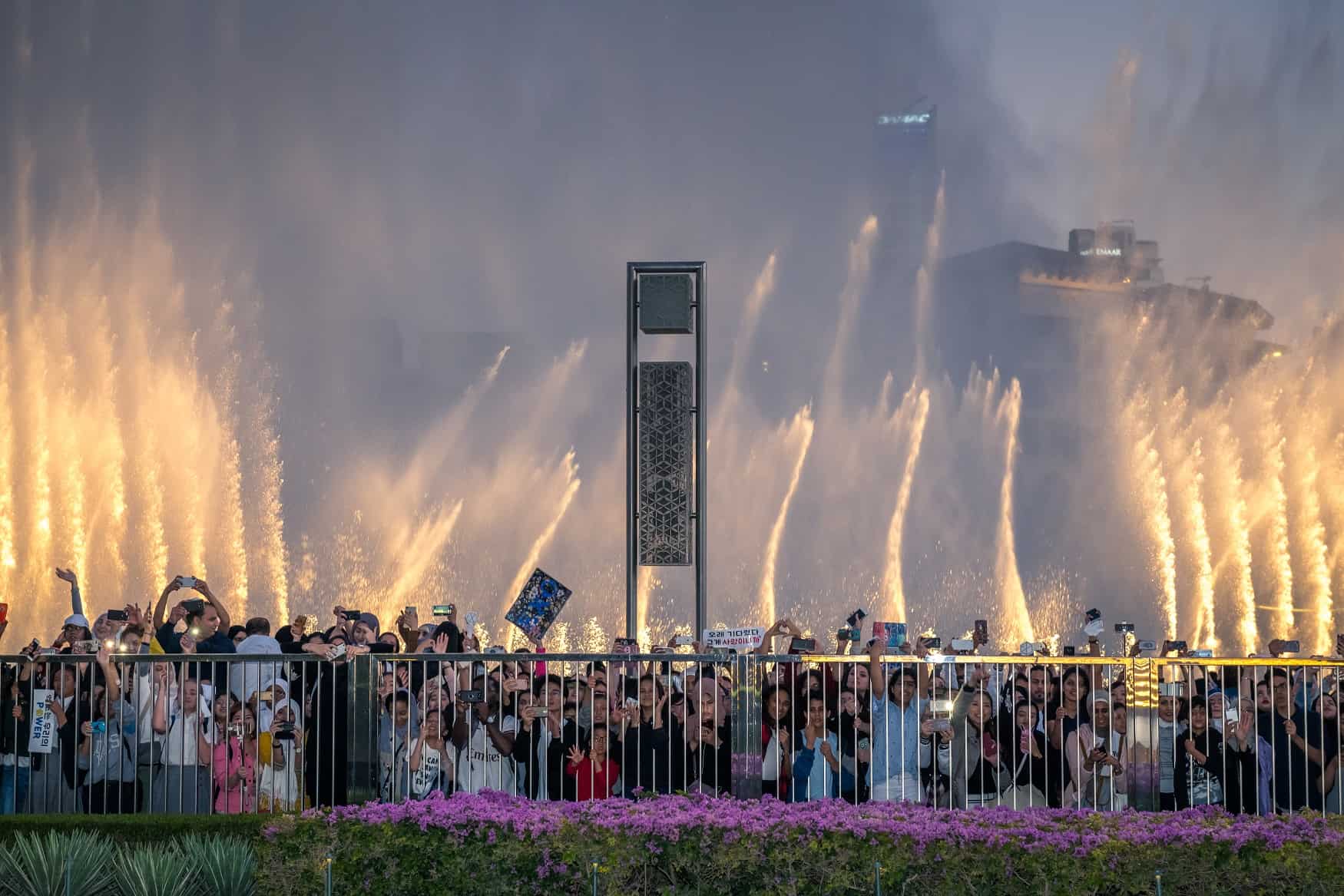 يحب السياح والمقيمون التقاط الصور قرب نافورة دبي والاستمتاع بأجمل اللحظات في هذا المكان الأخاذ.
