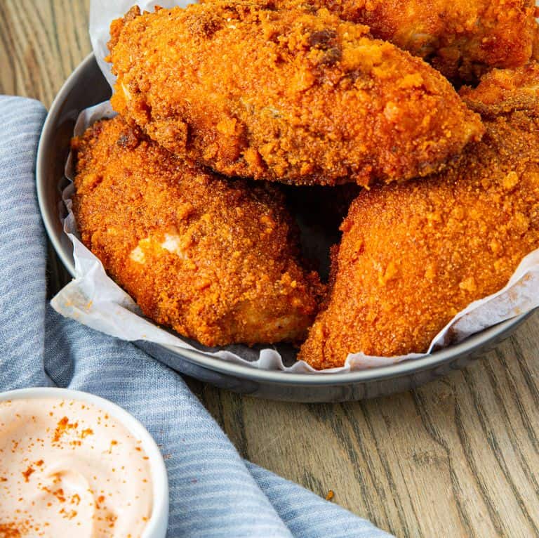 - قدمي الدجاج الساخن مع صلصة الغمس.