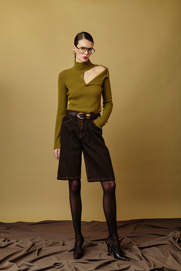 إمبوريو أرماني أثبت أن هذه القصة لا تقتصر على الصيف، بل يمكن اعتمادها بخامات شتوية منسقة مع البوت القصير لإطلالة أنيقة ومريحة.