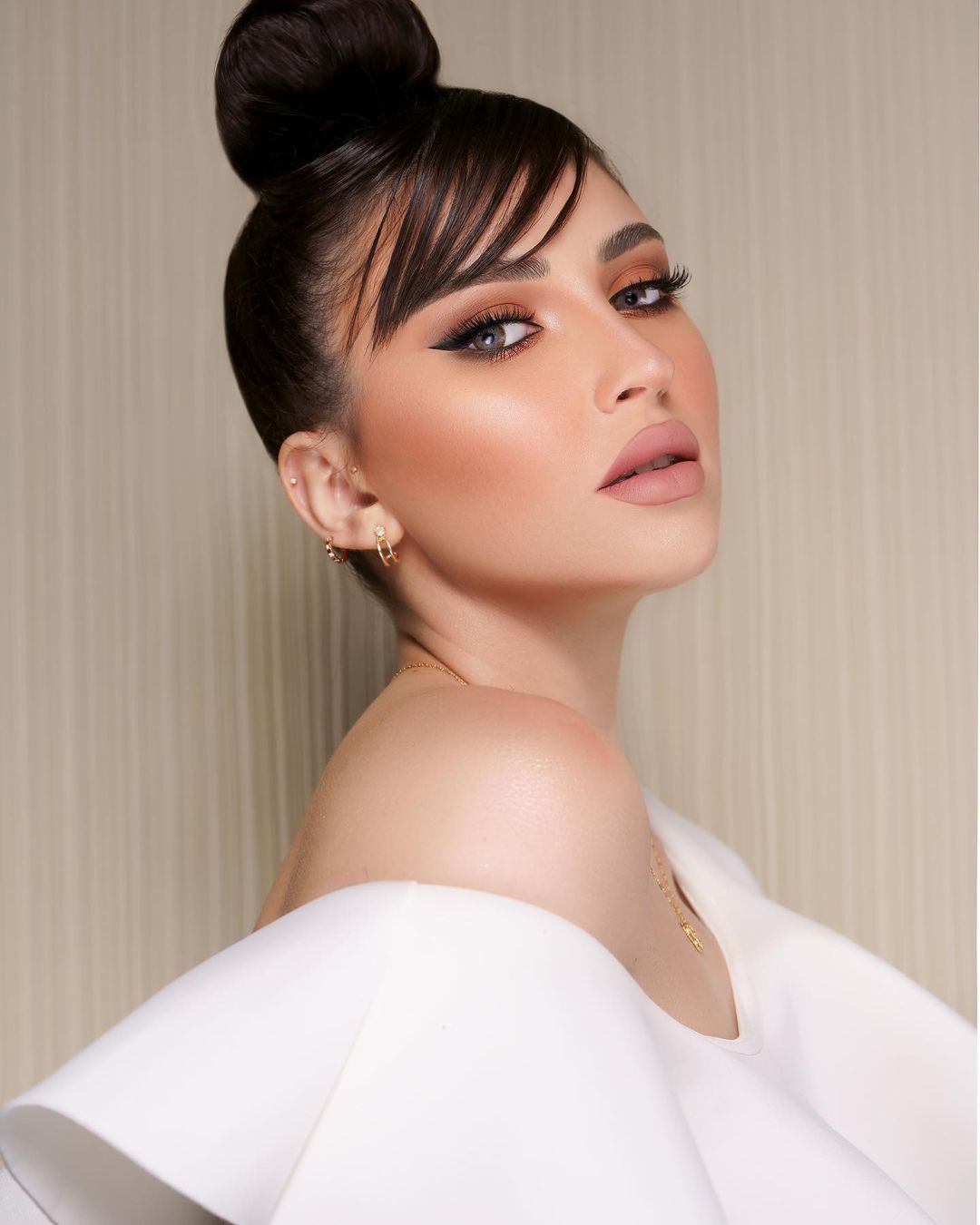تفضلين ستايلات المكياج الناعمة؟ جربي تطبيق الظلال الترابية على الجفن العلوي بالكامل بدرجة نيود مناسبة للون البشرة.