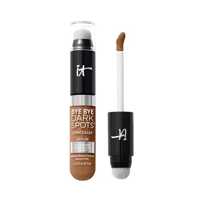 إذا كنتِ تفضلين شيئًا أخف وأكثر ترطيبًا، يوفر IT Cosmetics Bye Bye Dark Spots Concealer + Serum تغطية متوسطة قابلة للتراكم مع 24 ساعة من الترطيب.