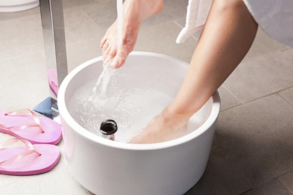 • اغمسي قدميك في حوض ساخن لمدة ثلاث دقائق.