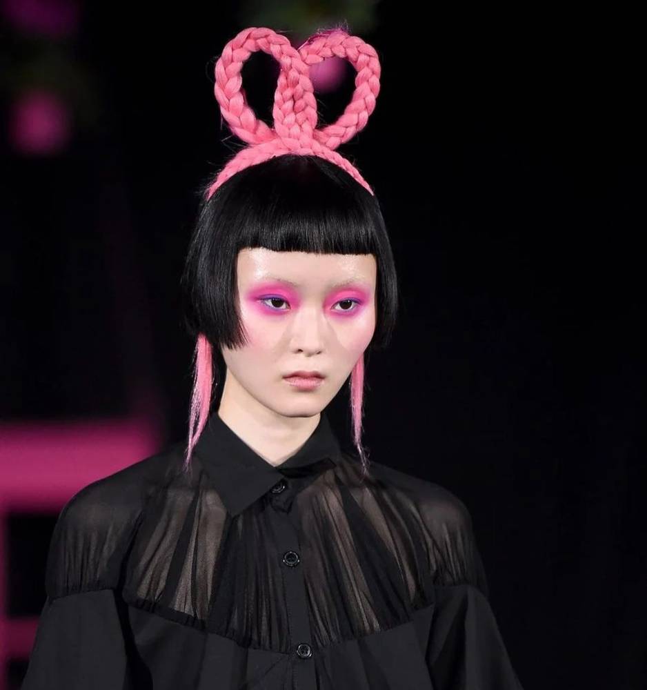 صيحة رصدناها في عروض دار Christian Cowan للأزياء، يمكنك تجربتها مع الشعر المنسدل أو مقلوب عند الأطراف.