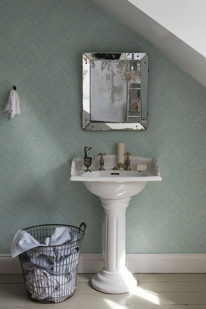 على الرغم من أنها تبدو معادلة صعبة بسبب كثرة الرطوبة في هذه المساحة، لكن قد يكون ورق الجدران الحل المثالي لتغيير ديكور الحمام بأبسط التكاليف. احرصي على اختيار خامة ورقة من الفينل أو منسوجة لتدوم أكثر.