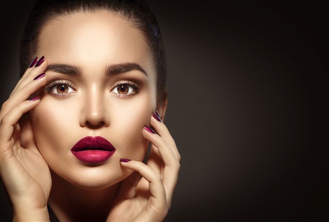 جربي تطبيق أحمر شفاه باللون الأحمر العميق، التوتي، البرغندي أو البرونزي حسب لون بشرتك الطبيعي.
