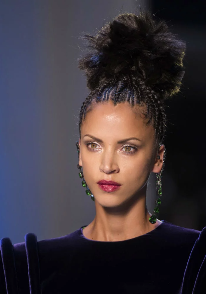 تسريحة ذيل حصان مع ضفيرة كبيرة تتوسط الرأس من عروض فيكتور ألفارو