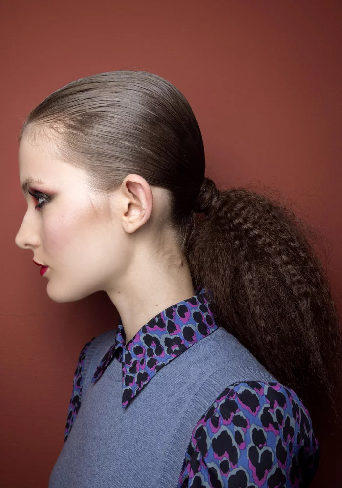 تسريحة ذيل حصان مع ضفيرة جانبية من عروض فالنتين يوداشكين