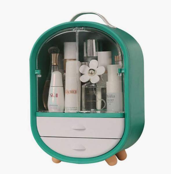 صندوق مكياج مبتكر من علامة Etsy يتضمن واجهة شفاف مع جوراير صغيرة من الجهة السفلية.