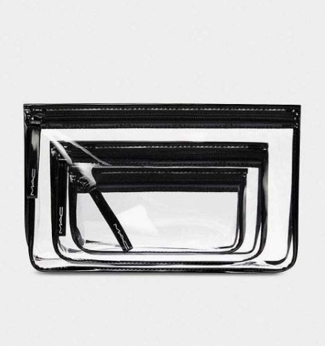 حقيبة مكياج كلاسيكية تأتي بثلاثة أحجام مصنوعة من البلاستيك الشفاف والجلد الأسود اللامع عند الأطراف. الحقيبة من علامة Selfridges.